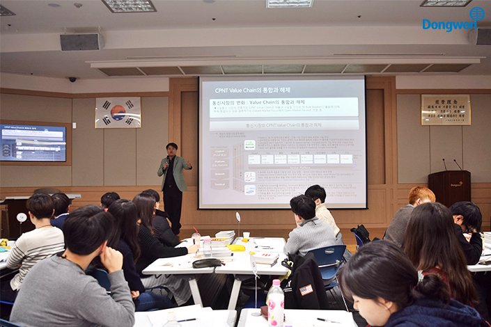 이날은 최형우 서강대학교 커뮤니케이션학부 교수가 ‘Re-Imagination of Digital Technology’를 주제로 첫 수업을 진행했습니다. 최형우 교수는 학생들의 시각으로 기술이 재해석 되기를 바란다면서, 각자의 눈높이에 맞게 이해하고 질문해달라는 격려와 함께 수업을 시작했습니다. 요즘 어느 분야에서나 4차 산업혁명이 큰 화두인 만큼, 많은 학생이 흥미를 갖고 질문을 이어갔습니다. 학생들은 특히 강연 내용 중 ICT 기술을 근간으로 하는 가상현실과 바이오 의학, 나아가 인공지능(AI)의 영역이 점차 확대됨에 따라 미래의 우리 삶에 지대한 변화를 초래한다는 부분에 큰 관심을 보였습니다.