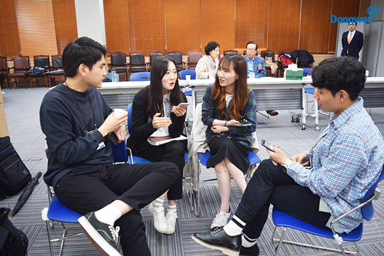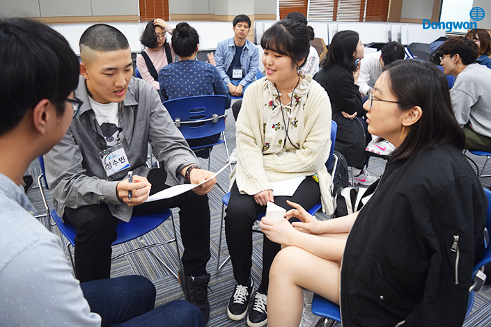 매주 자양 라이프 아카데미 수업이 열리는 동원산업빌딩 20층 대강당은 학생들에게 교실과도 같은 곳입니다. 이날 교실은 좀더 특별한 모습이었습니다. 다른 날과 달리 ‘책상 없는 교실’이 되었기 때문입니다. 학생들은 의자만 갖고 둥그렇게 원을 만들어 앉아 수업 들을 준비를 마쳤습니다.