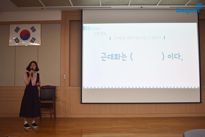 이날 module 시간에는 가깝고도 먼 나라 일본의 역사를 통해 동서양 역사의 흐름을 살펴보았습니다. 7조와 8조 학생들이 먼저 <학교에서 가르쳐주지 않는 일본사>를 읽고 책을 재구성, 꼭 알아야 할 지식을 정리해 일본사에 대한 이해를 높여줬습니다. 학생들은 일본의 근대화를 통해 동서양의 근대화 과정을 살펴보고, 세계 구조를 만든 분기점, 앞으로 발전할 수 있는 미래 동력은 무엇이 될지 의견을 나누며 과거를 통해 미래를 예측했습니다.